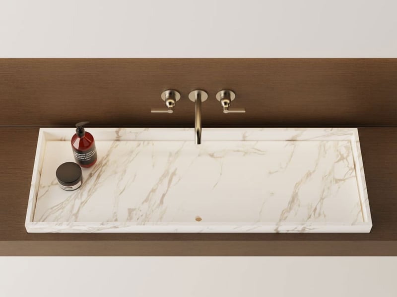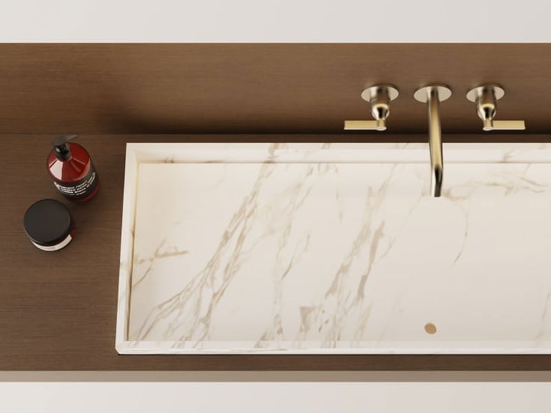 Essenziale, architettonico, scultoreo: 004 è pensato per chi desidera un lavabo da semincasso dal carattere distintivo e materico.