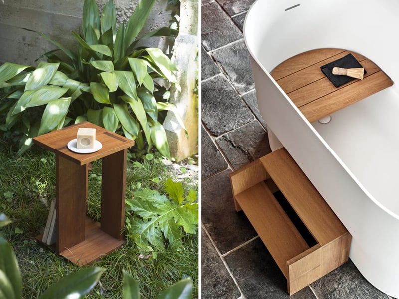Posizionato in verticale, Ascension funge da comodo tavolino porta oggetti, mentre in orizzontale può essere utilizzato come gradino per facilitare l'accesso alla vasca, o anche come seduta aggiuntiva. Con le sue dimensioni di L. 50 cm × P. 30 cm × H. 30 cm, Ascension è perfetto per chi cerca un complemento d'arredo multifunzionale, pratico e dal design raffinato.