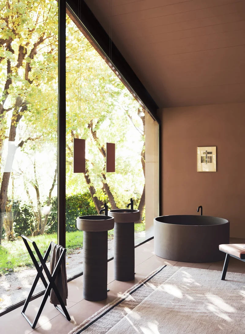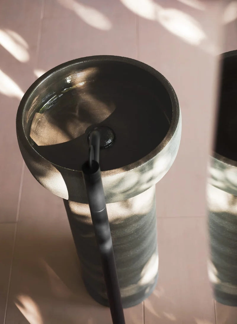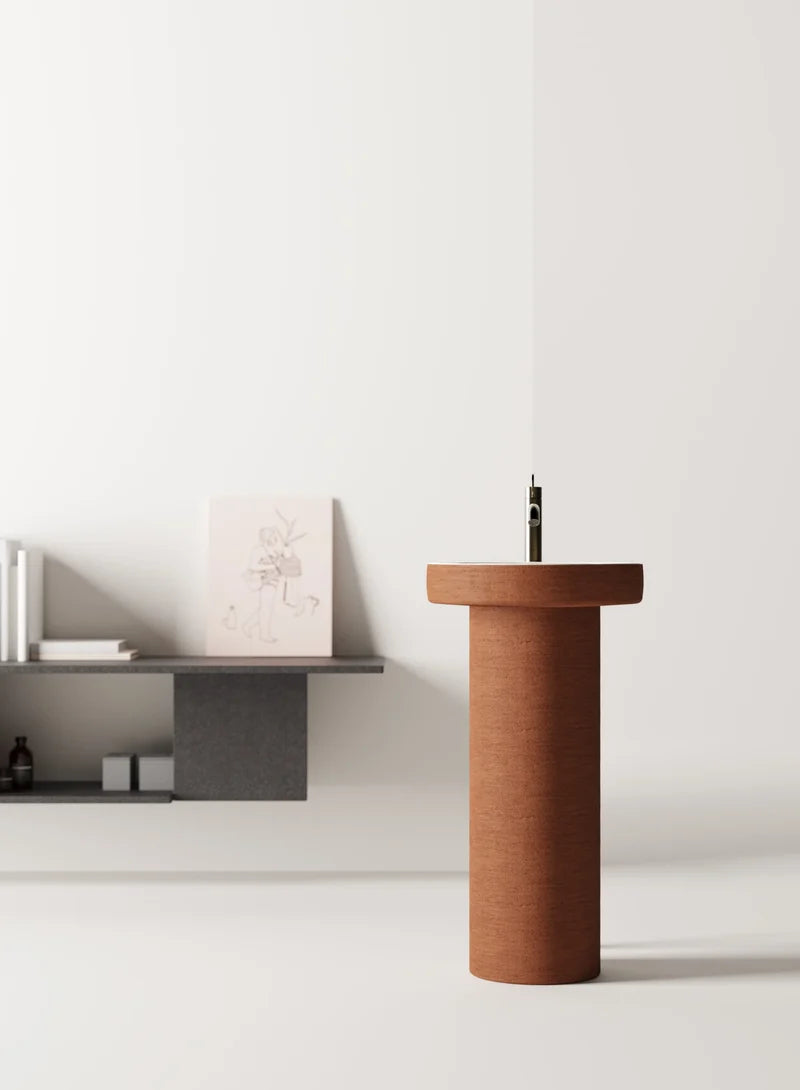 Il Cenote Lavabo a Colonna, disegnato da Patricia Urquiola per Agape, è un'opera d'arte che fonde design innovativo e lavorazione artigianale. Parte della collezione Cenote, questo lavabo è realizzato in argilla refrattaria modellata a mano al tornio, il che lo rende un pezzo unico e prezioso.