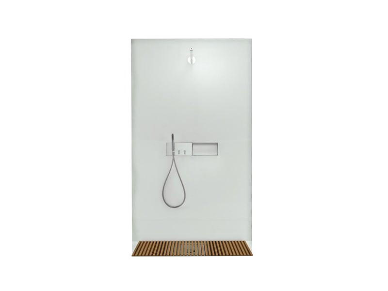 - Pedana in teak incassata nel piatto in inox o in Exmar bianco