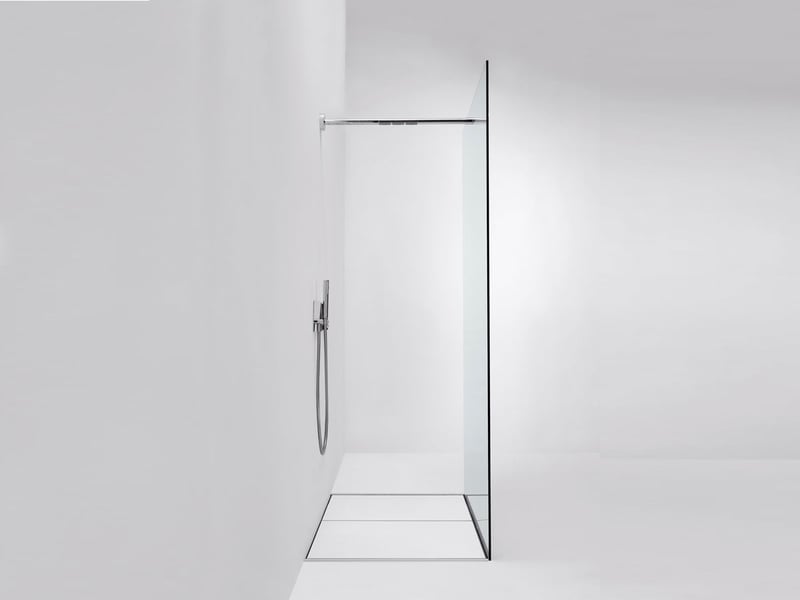 La Flat D Doccia, disegnata dallo studio Benedini Associati per Agape, è una doccia che unisce bellezza, funzionalità e modernità. Composta da una parete di cristallo con spessore di 100 mm e altezza di 2200 mm, Flat D si distingue per il suo design raffinato e l'attenzione ai dettagli.