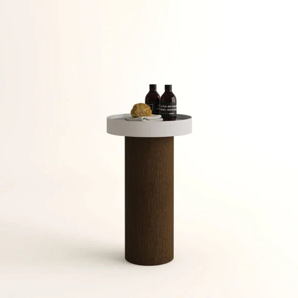 La base contenitore cilindrica è realizzata in multistrato di betulla curvato con rivestimento in rovere naturale, rovere bruno, rovere scuro, o laccato opaco bianco o grigio, offrendo una varietà di opzioni che si adattano perfettamente a qualsiasi tipo di bagno. Gemma Tavolino è ideale come contenitore o piano d’appoggio, ed è perfetto come elemento di supporto in ogni ambiente bagno, portando con sé linee semplici e pulite che si integrano armoniosamente con altri arredi.