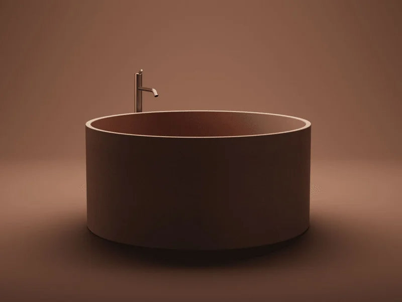 Disponibile in diverse finishes, tra cui Rosso Mattone, Verde, Grigio Chiaro, Grigio Scuro e Caffè, la vasca In-Out Cemento trasforma l'ambiente esterno, creando un'atmosfera calda e accogliente. Il design semplice e moderno, combinato con il materiale durevole, rende la vasca ideale sia per uso interno che esterno.