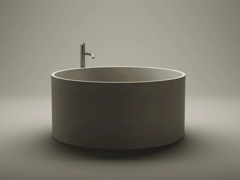 Con dimensioni di Ø 130 cm × H. 58 cm, la vasca In-Out Cemento offre sia praticità che eleganza, rendendola una scelta perfetta per un bagno esterno esclusivo.