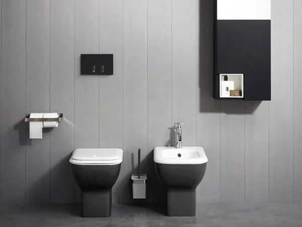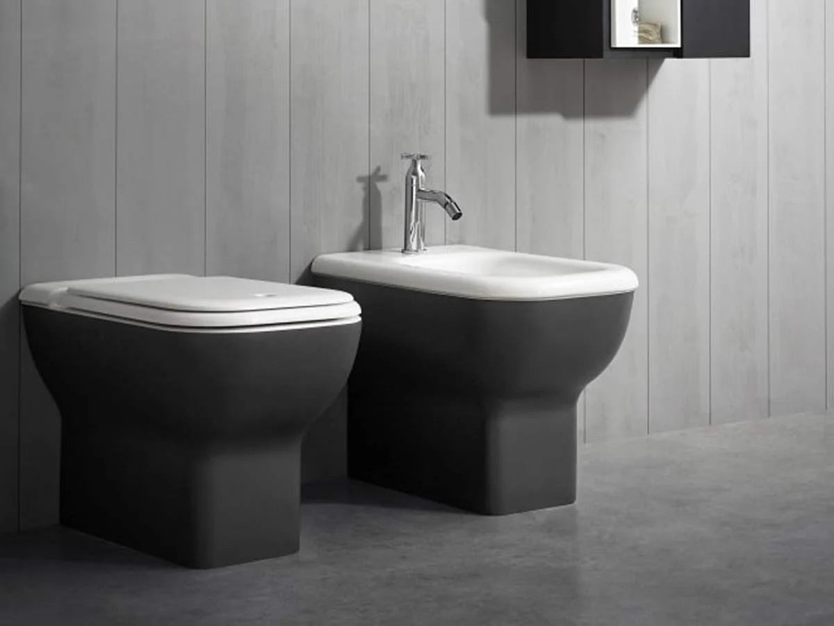 Il bidet, con foro per rubinetteria e foro per troppo pieno con ghiera in acciaio inox lucido, completa la proposta in modo armonico. Una scelta perfetta per chi cerca sanitari di design, funzionali e sostenibili.