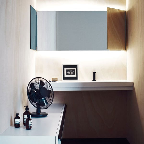- Illuminazione LED integrata con interruttore per accensione sulla parte inferiore dello specchio centrale