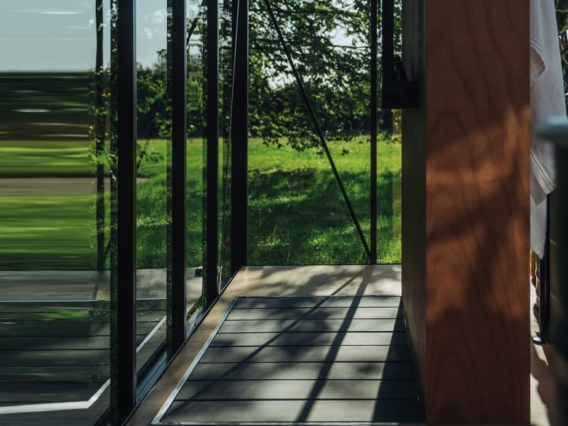 Realizzata con doghe in Cementoskin®, materiale noto per la sua resistenza agli agenti atmosferici, e supportata da un telaio in alluminio anodizzato spazzolato nero, questa pedana si distingue per la raffinatezza formale e l’elevata funzionalità.