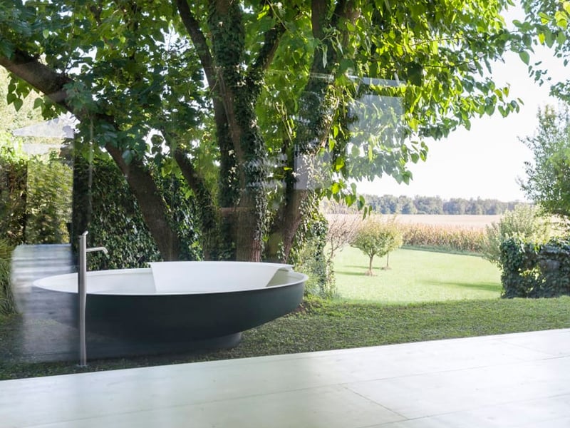 Per facilitare l'installazione, si suggerisce l’utilizzo del pozzetto per vasca AKITPZVAS. Ufo è l'elemento ideale per chi desidera un’esperienza di bagno all’aperto, all’insegna della raffinatezza e comfort.