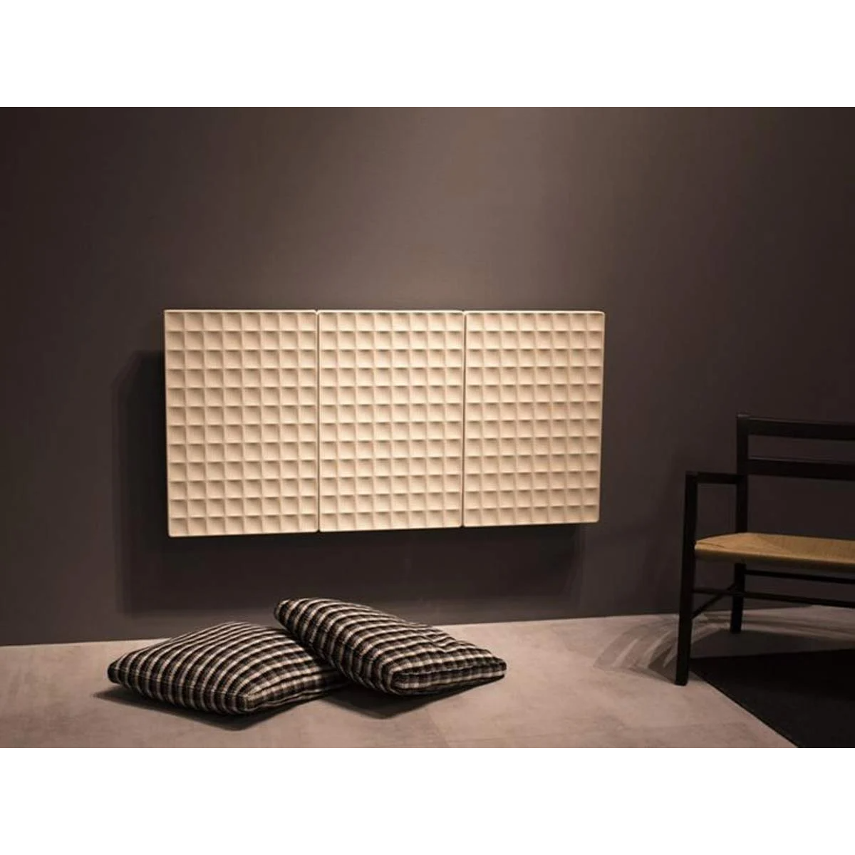 - Superficie materica ispirata ai radiatori in ghisa