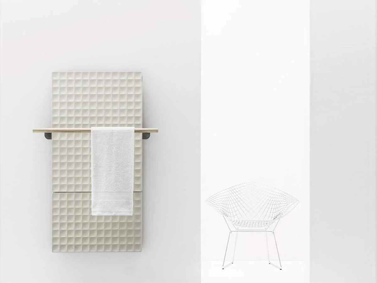 Il Radiatore Waffle V H.164, disegnato da Piero Lissoni per Antrax IT, è un termoarredo a parete che unisce estetica scultorea e funzionalità contemporanea. Realizzato in fusione di alluminio riciclabile, Waffle V reinterpreta in chiave moderna il classico radiatore in ghisa, donando alla superficie un carattere materico tridimensionale e sofisticato. La versione con altezza 164 cm si distingue per la sua presenza verticale e slanciata, perfetta per ambienti living, bagni o spazi dallo stile contemporaneo. Il design geometrico e creativo lo rende un elemento decorativo oltre che funzionale, capace di valorizzare qualsiasi ambiente con eleganza.