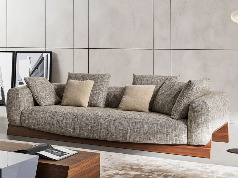 Disponibile in tessuto o pelle, Boolean si distingue per l’alta qualità dei materiali e per l’attenzione ai dettagli. La struttura in noce canaletto o rovere carbone conferisce solidità e calore estetico, mentre le proporzioni generose (270 cm) lo rendono ideale per accogliere fino a quattro persone.