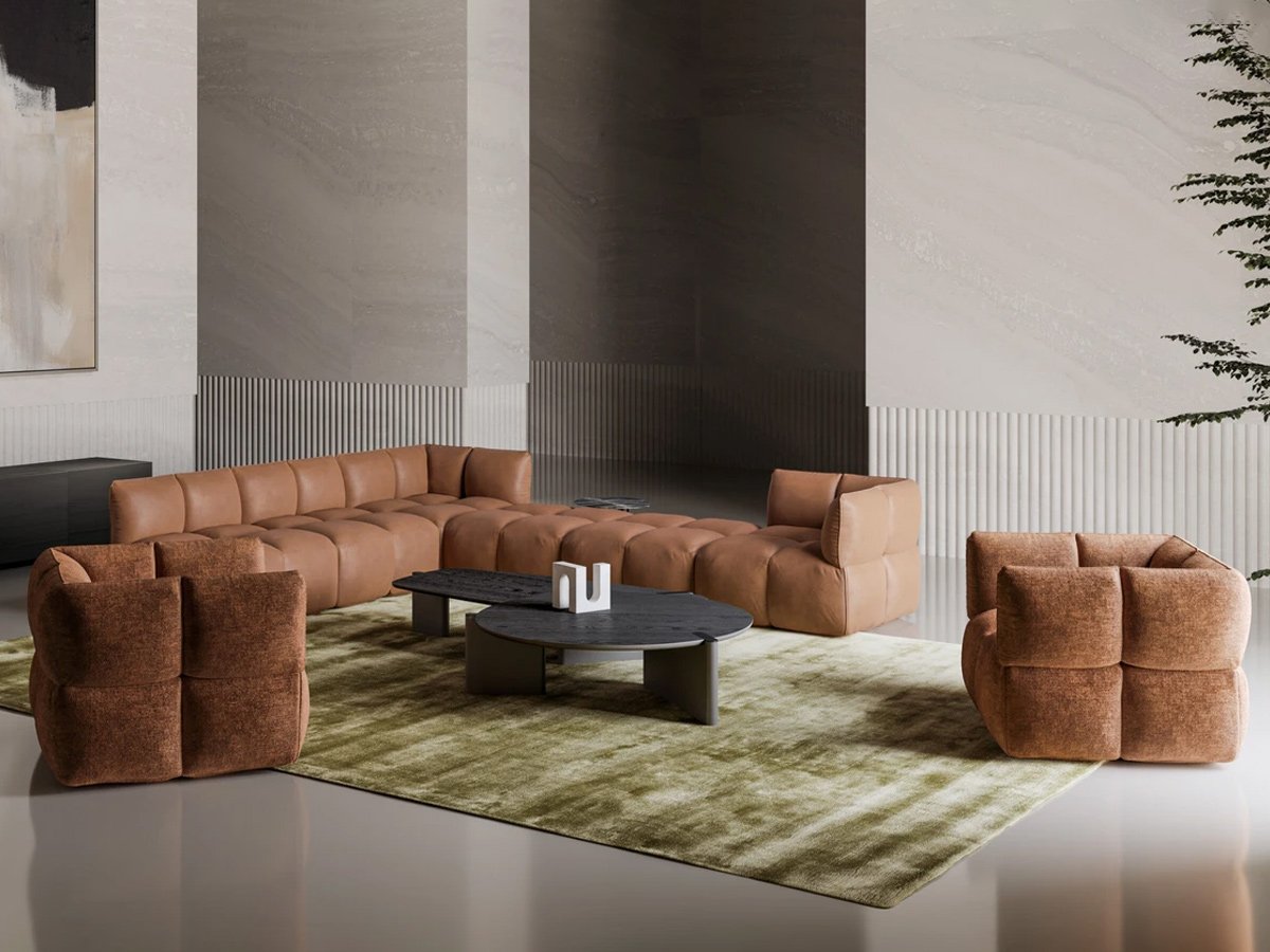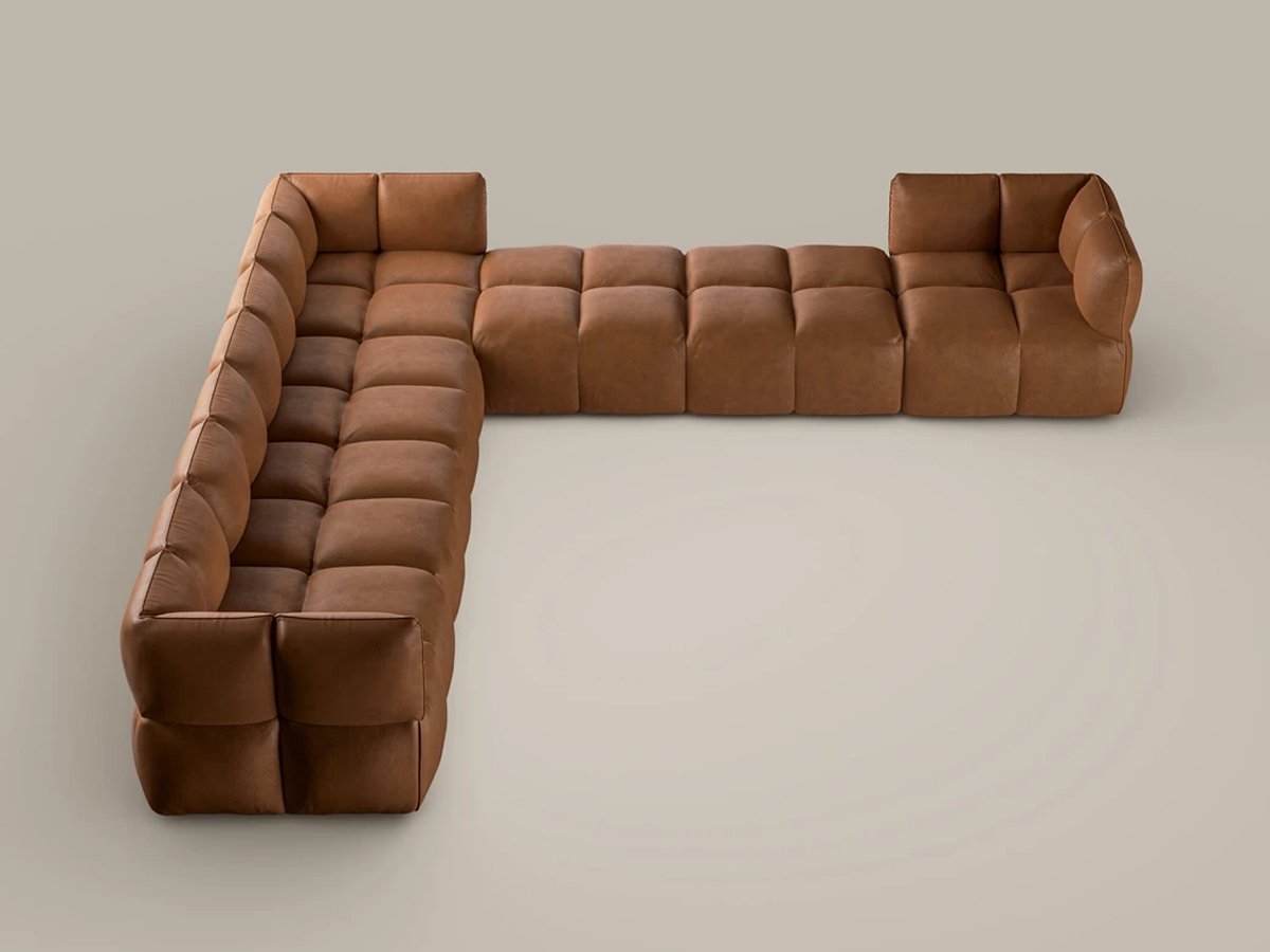 La Composizione 6 è una configurazione ampia e simmetrica, pensata per zone living contemporanee dove il comfort si unisce a un design informale, morbido e accogliente. Le linee ispirate agli anni Ottanta conferiscono al divano un’estetica fluida e conviviale, rompendo la rigidità delle configurazioni tradizionali. Ogni modulo – centrale, angolo o pouf – può essere utilizzato singolarmente o integrato in layout personalizzati. Con Brik, Bonaldo ridefinisce l’idea di relax con un linguaggio moderno e modulare.