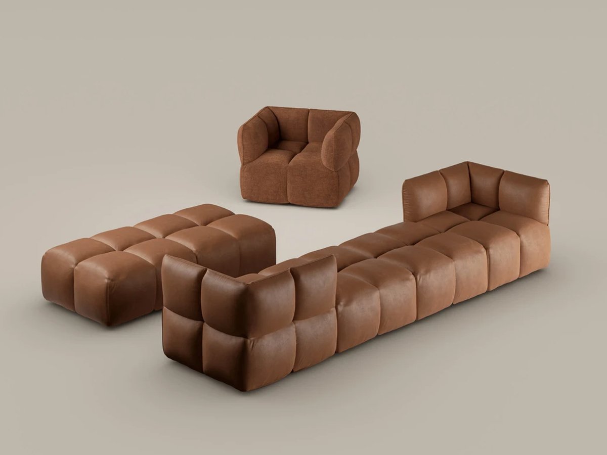 - Componibile liberamente: elementi centrali, angolari, pouf, poltrone