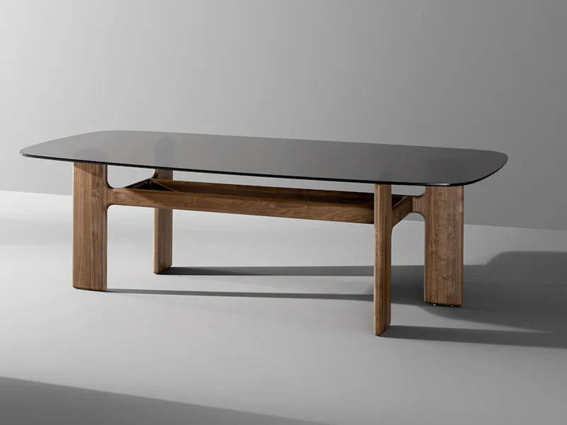 - Combinazione di legno massiccio e cristallo, materiali resistenti e raffinati