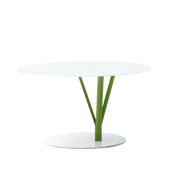Il tavolino Kadou Caffè di Bonaldo, disegnato da Ryosuke Fukusada, unisce il rigore poetico della cultura orientale con la maestria del design italiano. La sua inconfondibile struttura a rami in acciaio verniciato verde opaco, abbinata al piano rotondo in acciaio bianco opaco, conferisce a ogni ambiente un tocco scultoreo e contemporaneo. Kadou può essere utilizzato come tavolino singolo o in composizioni multiple, combinando le varie finiture disponibili per ottenere un effetto grafico e decorativo unico. Ideale per living, lounge, hall e spazi contract.