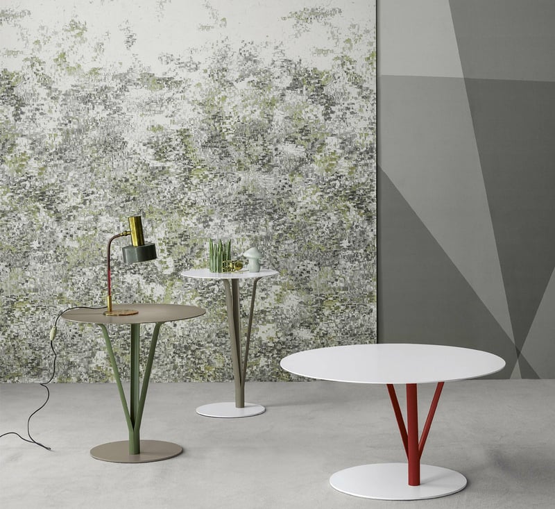 Il tavolino Kadou Coffee di Bonaldo, disegnato da Ryosuke Fukusada, è una sintesi poetica tra design orientale e artigianalità italiana. La sua forma richiama un ramo stilizzato, con una struttura composta da elementi curvati che evocano la natura reinterpretata in chiave contemporanea. In questa versione, il piano in acciaio verniciato bianco opaco si combina con rami in finitura tortora opaco, per un look delicato e versatile. Kadou Coffee può essere utilizzato come elemento singolo oppure abbinato ad altri modelli della stessa collezione per creare un’installazione dal forte impatto visivo.