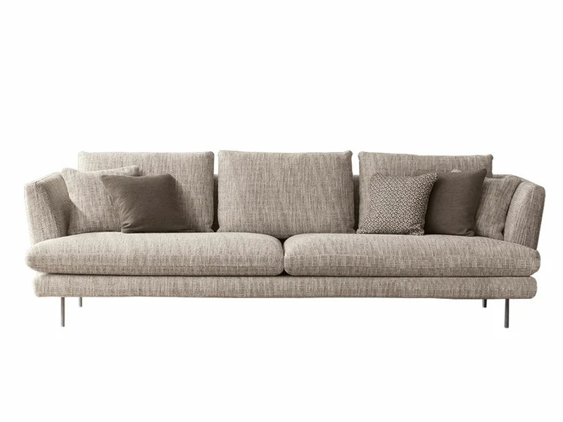 Il divano Lars, disegnato da Giuseppe Viganò per Bonaldo, rappresenta una perfetta fusione tra morbidezza, leggerezza e stile contemporaneo. Le sue forme accoglienti, i braccioli inclinati verso l’esterno e i piedini metallici sottili definiscono una silhouette aerea e sofisticata. I cuscini di diverse misure, combinati con il rivestimento in tessuto Cat. Class, danno vita a un’idea di movimento e massimo relax. Ideale per ambienti moderni, Lars è un divano a 3 posti che porta eleganza e dinamismo in ogni zona living.