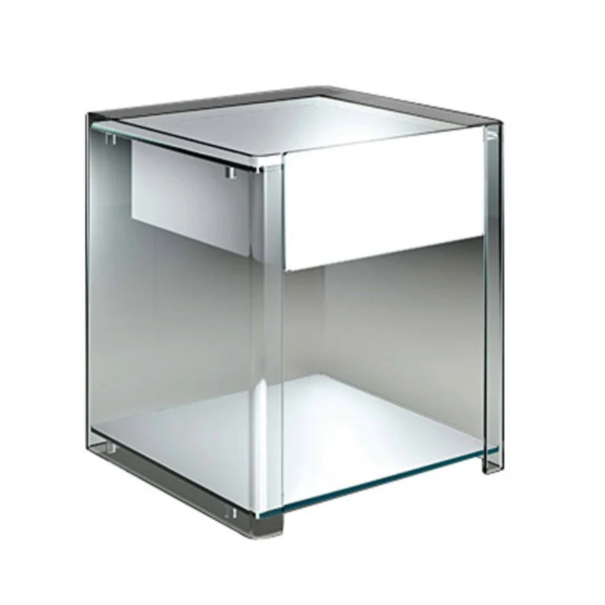 La struttura trasparente e il design essenziale lo rendono ideale per arredare la zona notte con uno stile sobrio ma ricercato. La resistenza del vetro permette una capacità di carico di 20 kg per ogni piano, coniugando estetica e funzionalità.