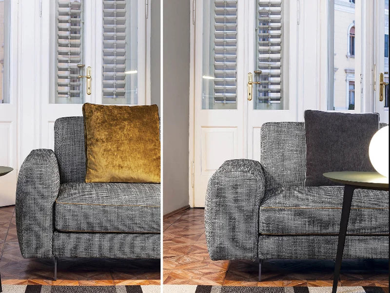 - Rivestimento: Tessuto sfoderabile o pelle (cuciture taglio vivo)