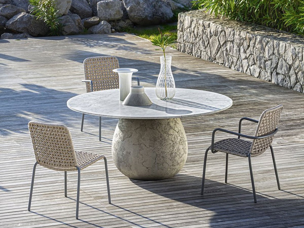 La combinazione di texture materiche e linee morbide conferisce al tavolo un’estetica solida ma al contempo sofisticata. Perfetto per spazi esterni contemporanei, terrazze e giardini di classe, InOut 834 è molto più di un semplice tavolo: è un elemento d’arredo con forte personalità e presenza scenica.