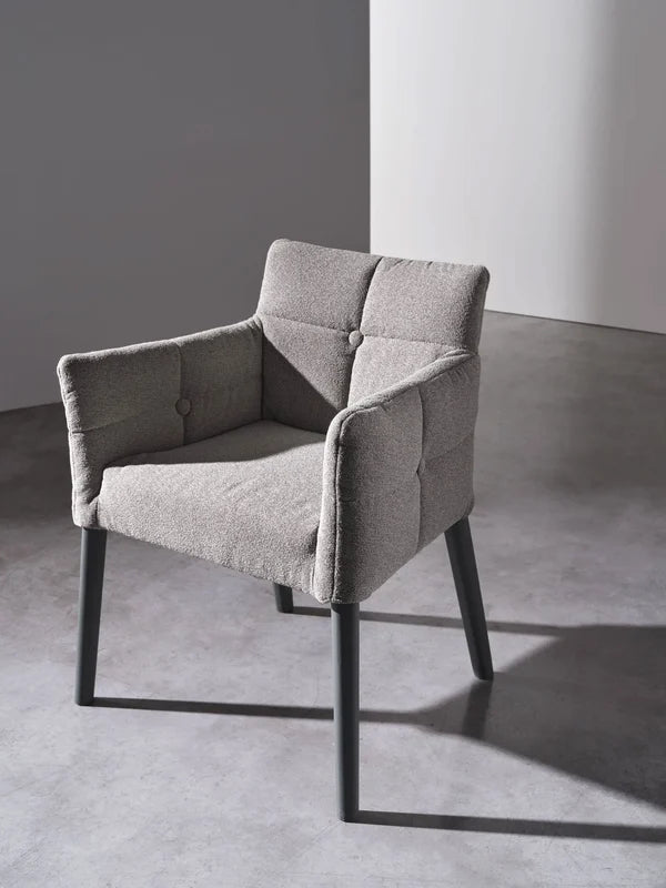 Mae 24 è la poltroncina firmata Marco Acerbis per Gervasoni, progettata per esprimere un nuovo concetto di comfort sofisticato e accogliente.La silhouette slanciata e contemporanea è ammorbidita da una generosa imbottitura, che avvolge completamente la struttura definendo volumi armoniosi. Il risultato è una seduta comoda, elegante e conviviale, ideale per ambienti dining sia domestici che contract.Braccioli e schienale sono completati da morbidi cuscini che potenziano ulteriormente il comfort. Le fodere sono completamente sfoderabili, facilitando la manutenzione e offrendo praticità senza sacrificare l’eleganza.Mae è altamente personalizzabile grazie all’ampia gamma di tessuti disponibili, consentendo un’armoniosa integrazione in qualsiasi contesto stilistico, dal più minimale al più decorativo.Con un perfetto equilibrio tra artigianalità e design contemporaneo, Mae 24 rappresenta un invito al relax con uno stile sobrio e raffinato.
