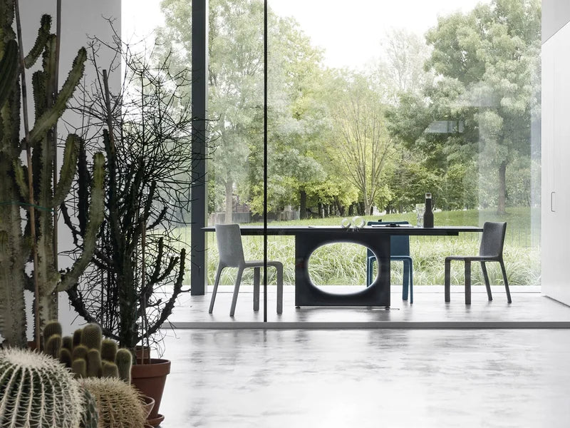 Il tavolo Holo di Kensaku Oshiro per Kristalia è una fusione straordinaria di innovazione tecnologica e design sofisticato. Al centro di questo design c'è l'innovativo basamento centrale, caratterizzato da un foro ovale distintivo e linee morbide, scolpite attraverso un complesso processo di stampaggio e piegatura della lamiera di metallo.