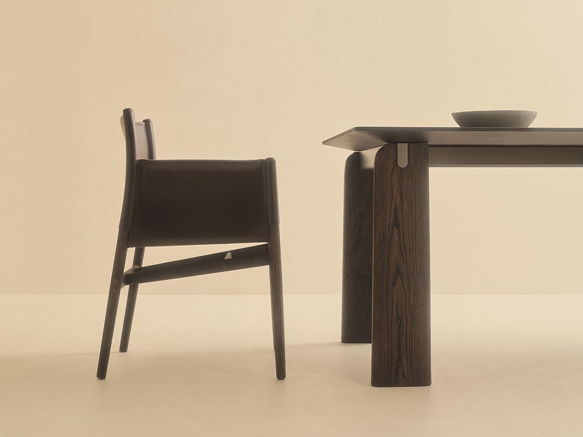 Ayon è una sedia con braccioli elegante e sofisticata disegnata da Gabriele e Oscar Buratti per Lema. Realizzata con struttura in legno di frassino tinto rovere termotrattato e rivestimento in cuoio, Ayon unisce materiali pregiati a lavorazioni artigianali di altissimo livello. Le cuciture a vista, le venature del legno e i dettagli costruttivi esaltano l’estetica di una sedia capace di armonizzarsi con ambienti classici o contemporanei. Versatile e personalizzabile nelle finiture, Ayon è pensata per offrire comfort e stile in ogni contesto, dalla zona pranzo allo studio, fino ad ambienti contract di prestigio.