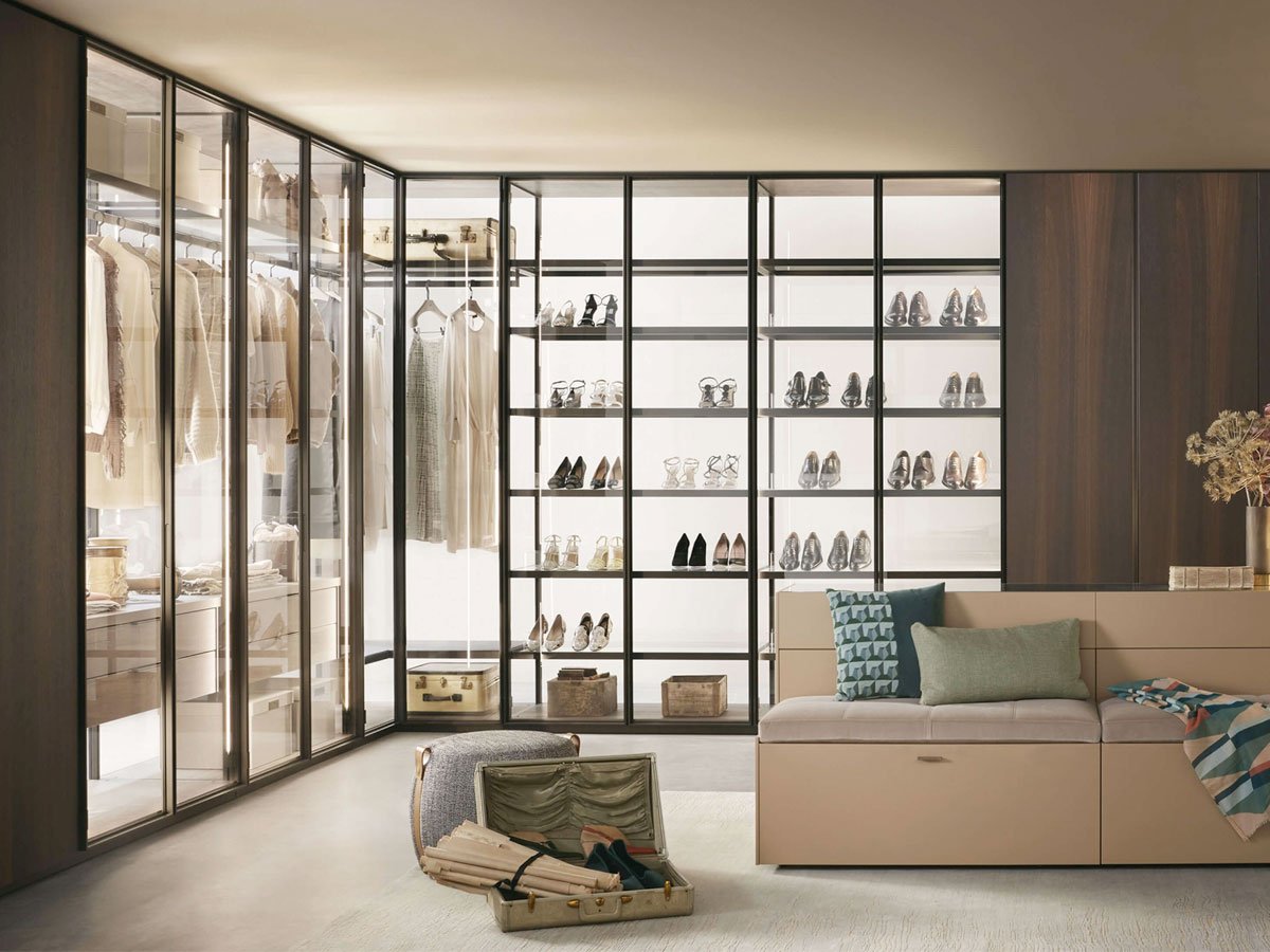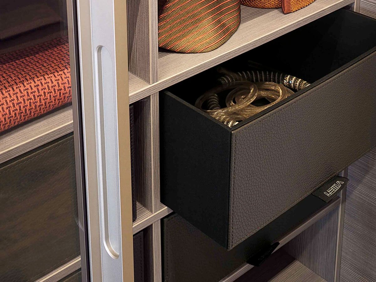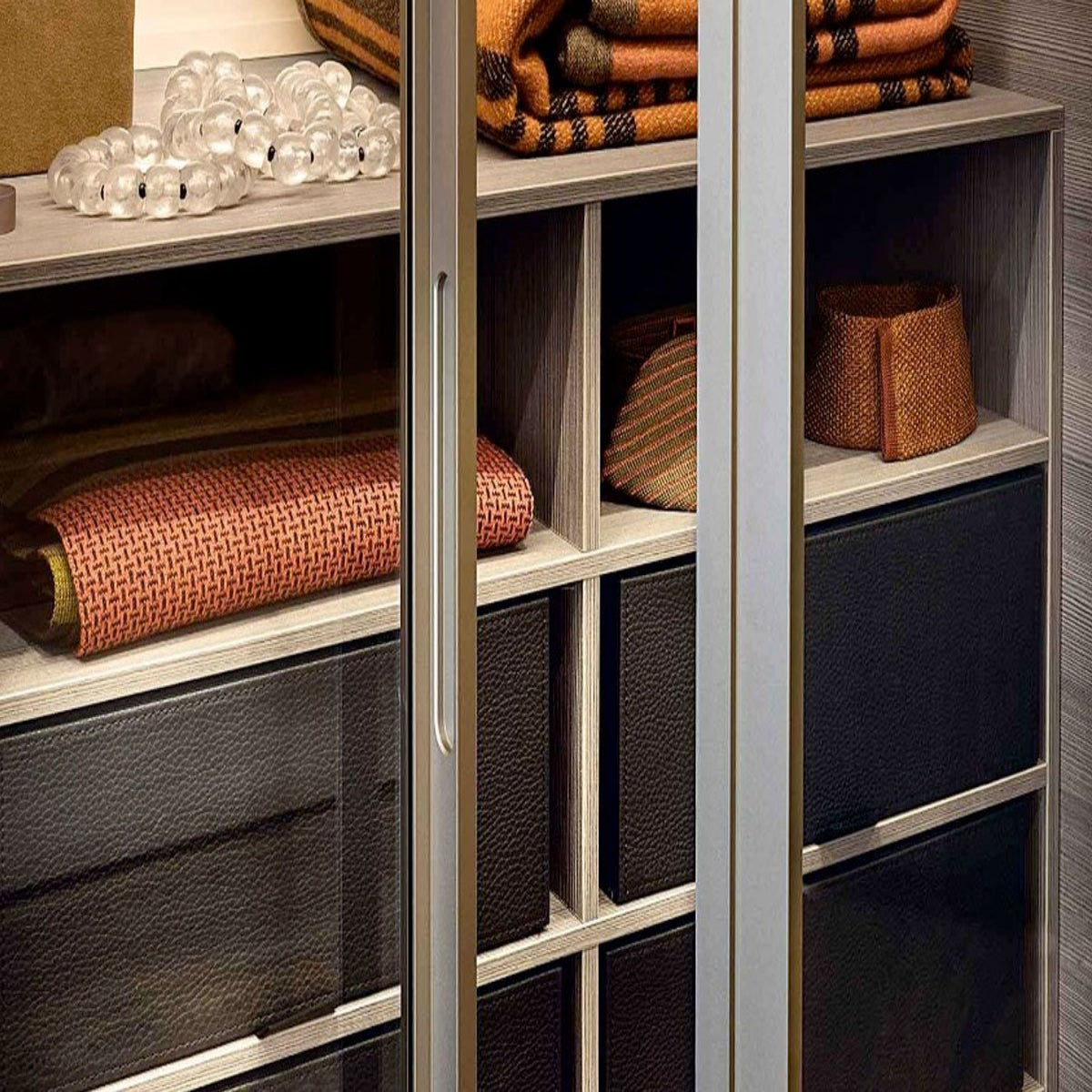 Uno dei suoi tratti distintivi è la straordinaria possibilità di personalizzazione: dalla scelta dei pannelli alle finiture, dai colori alle dimensioni, ogni dettaglio può essere adattato ai gusti e allo stile dell’ambiente in cui viene inserito. La versione con ante in vetro richiama il fascino degli armadi vetrina, donando una sensazione di leggerezza visiva e apertura totale.