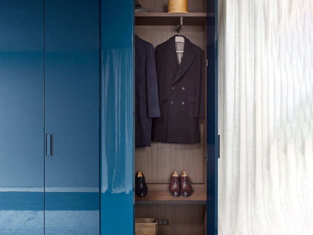 Gli interni attrezzati offrono una gamma completa di soluzioni: cassettiere, portapantaloni, portascarpe, portacinture, ripiani e barre appendiabiti con luce integrata, pensati per un’organizzazione intelligente ed elegante.