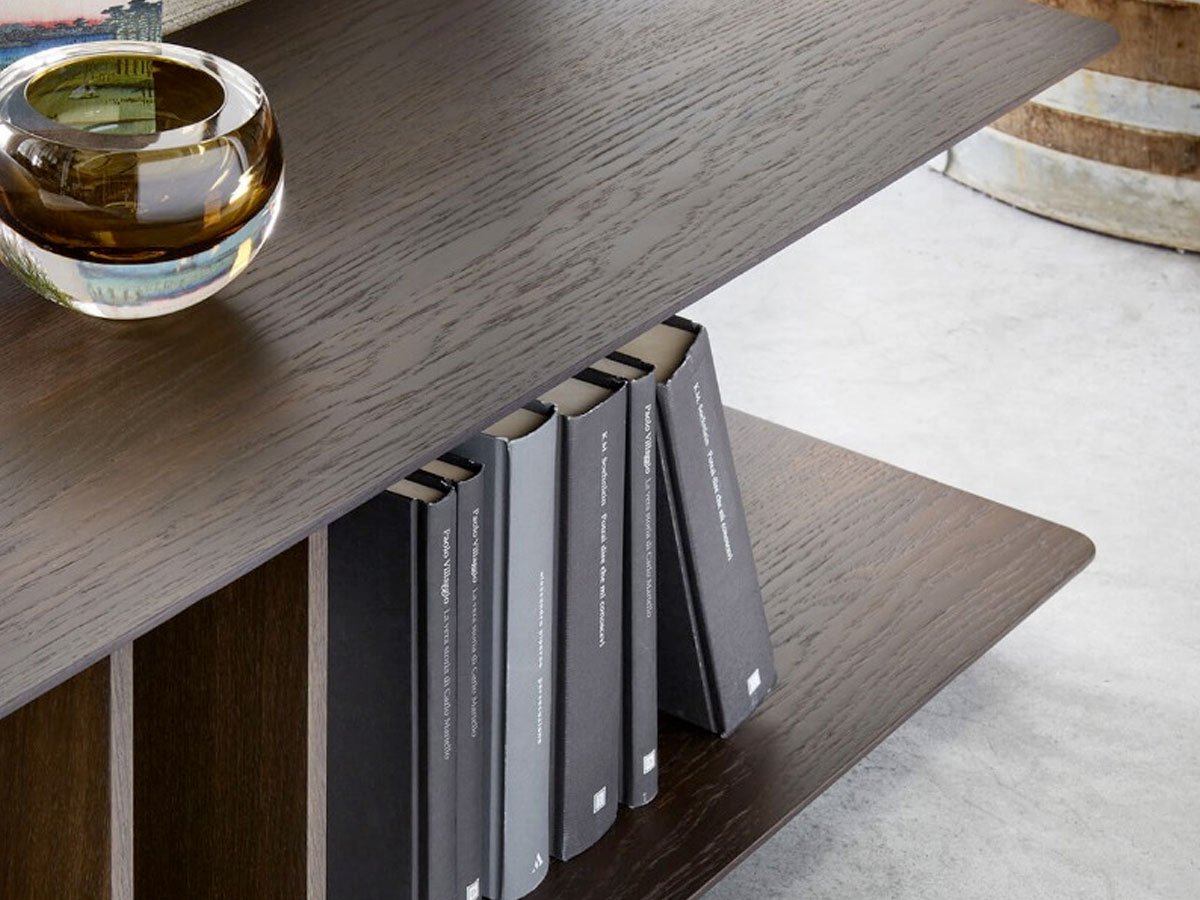 - Realizzato in legno pregiato con finiture rovere termotrattato e noce