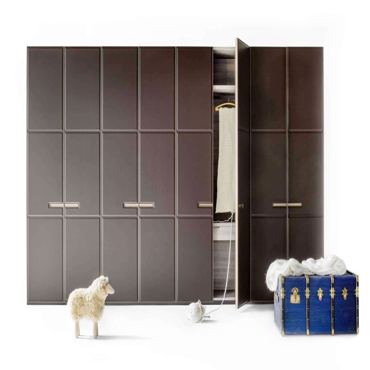 Warm è l’armadio firmato David Lopez Quincoces per Lema, un capolavoro di artigianalità e design. Le ante rivestite in cuoio, con cuciture sartoriali e una leggera imbottitura, danno vita a un affascinante gioco decorativo di forme asimmetriche, animando la superficie in modo unico ed elegante.