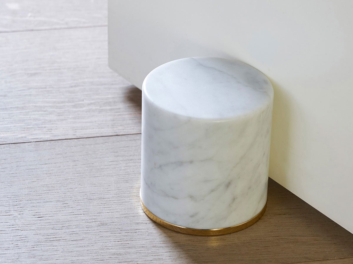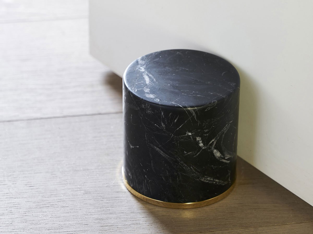 Fermaporte è l’oggetto di design firmato da Lapo Ciatti per Opinion Ciatti, pensato per unire funzionalità e stile in un unico gesto. Realizzato in marmo bianco di Carrara o nero Marquina, questo fermaporta dalla forma cilindrica è impreziosito da un anello antiurto in acciaio con finitura oro 24K, che ne esalta la presenza scenografica.