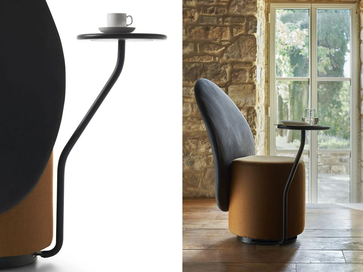 La seduta è imbottita e completamente sfoderabile, per una manutenzione semplice e una lunga durata. Disponibile in una varietà di finiture e combinazioni cromatiche, Loomi può essere personalizzata per integrarsi armoniosamente in qualsiasi contesto. È inoltre disponibile con tavolino laterale opzionale, per un tocco funzionale in più.