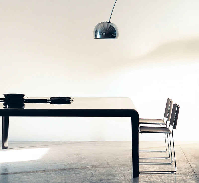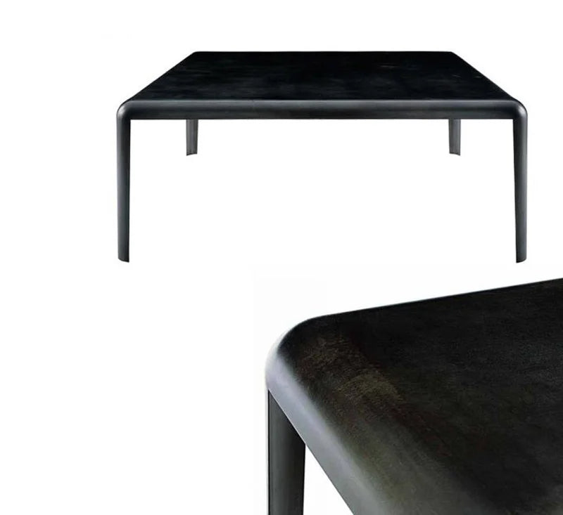 Ferro, disegnato da Piero Lissoni per Porro, è un tavolo iconico che unisce forma scultorea ed essenzialità visiva. Il suo design si distingue per la particolare curvatura degli angoli a grande raggio e per la bordatura convessa, elementi che conferiscono al tavolo una silhouette morbida ma strutturata.