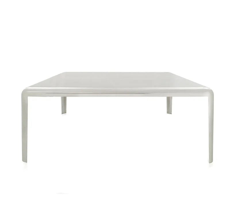 Realizzato in lamiera saldata e piegata, Ferro esprime un’estetica contemporanea attraverso finiture lucide di grande impatto visivo, capaci di riflettere la luce e amplificare la sensazione di eleganza. Questo tavolo è perfetto per ambienti moderni, minimalisti, ma anche per contesti professionali dove il design deve essere protagonista.