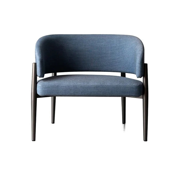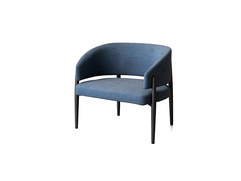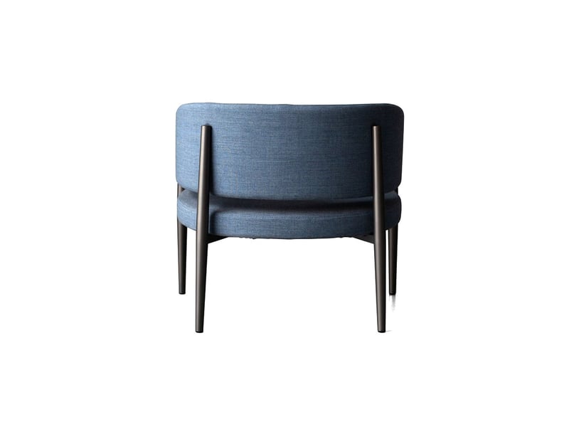 Le gambe snelle in ferro, proposte nelle raffinate finiture ottone o iron, restano a vista, creando un elegante contrasto con la morbidezza del rivestimento. Seduta, schienale e braccioli sono infatti completamente imbottiti e disponibili in tessuto, pelle o ecopelle, per una personalizzazione totale secondo stile e funzione.