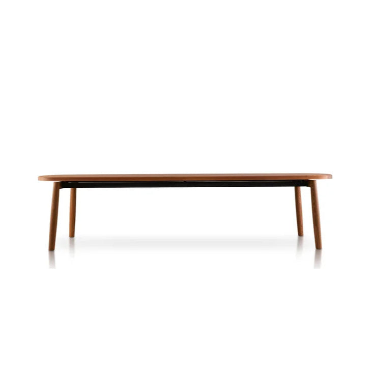La sua linea organica si traduce in un piano dalla forma pura e generosa, sostenuto da quattro gambe massicce, unite tra loro da una struttura centrale più scura, che sembra sospendere il piano, creando un effetto di leggerezza sorprendente. Il calore del legno e la cura per i dettagli rendono Galileo un arredo ideale per chi ricerca design, qualità e artigianalità in un unico oggetto.