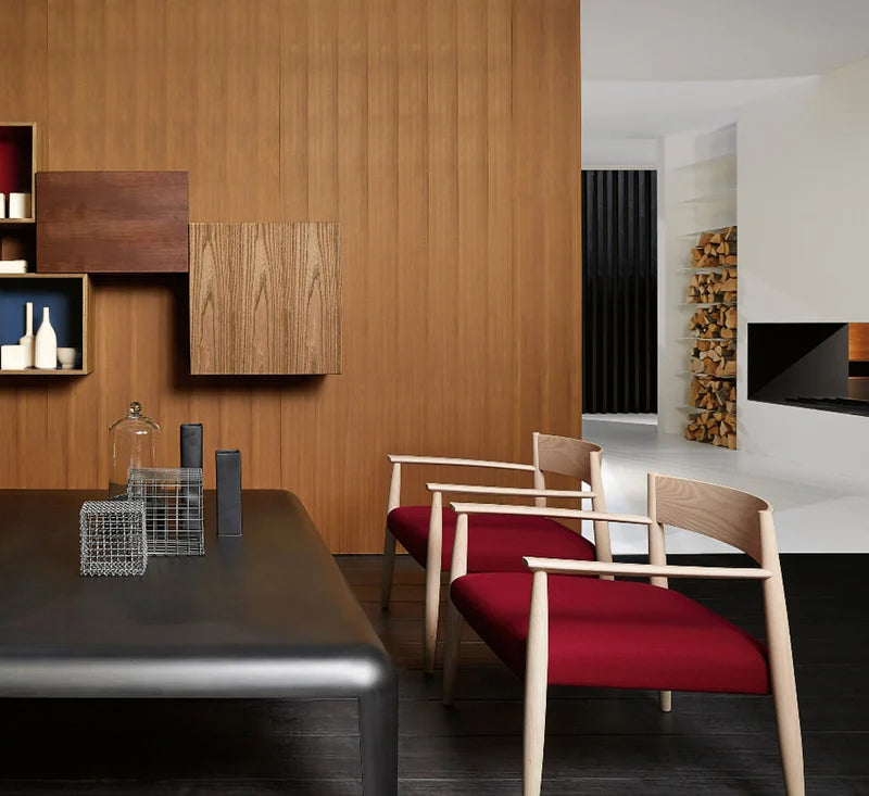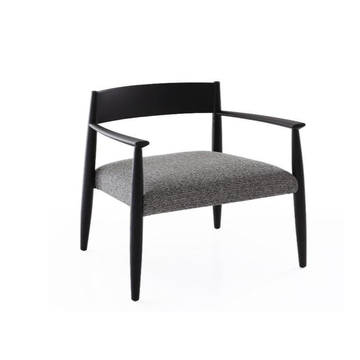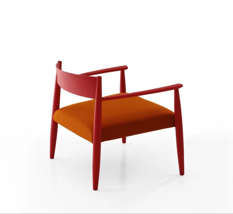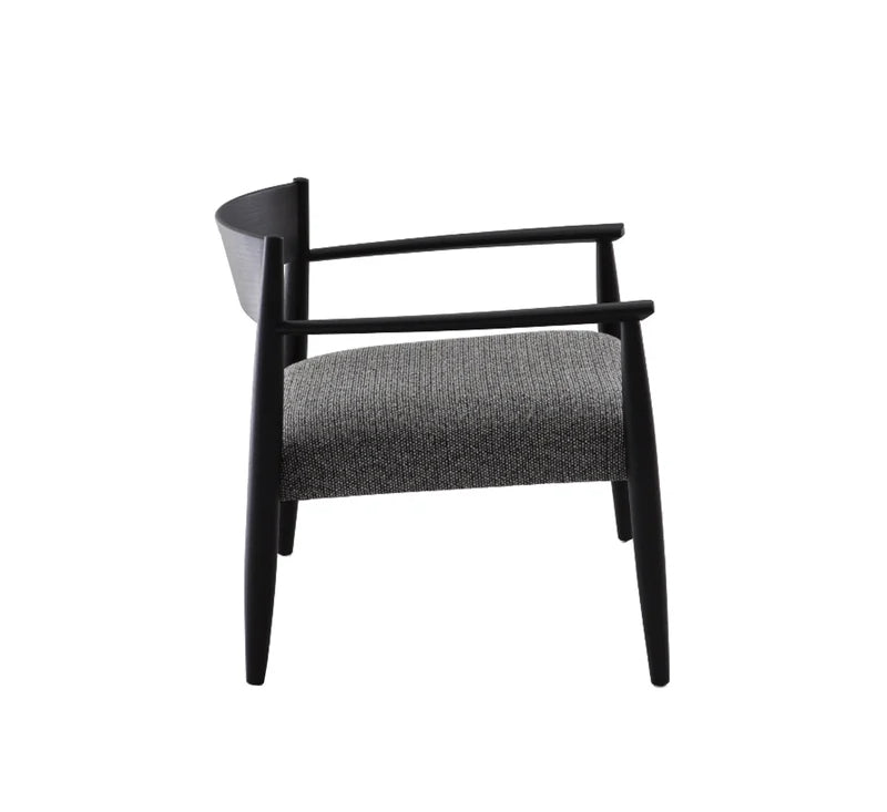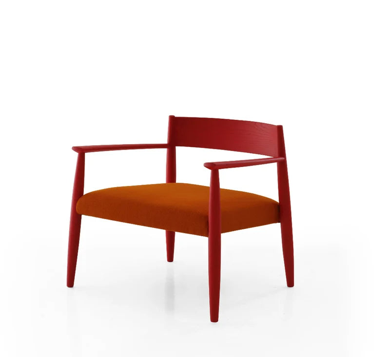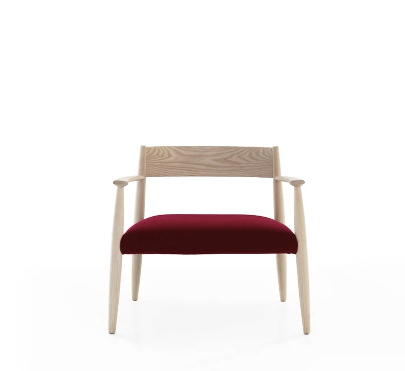 Le sue linee sinuose e compatte, la leggera curvatura dello schienale e la presenza rassicurante del legno la rendono una seduta perfetta per ambienti domestici, spazi lounge, sale d'attesa e contesti contract. Il suo design elegante e contemporaneo la rende facile da abbinare ma anche capace di risaltare da sola.