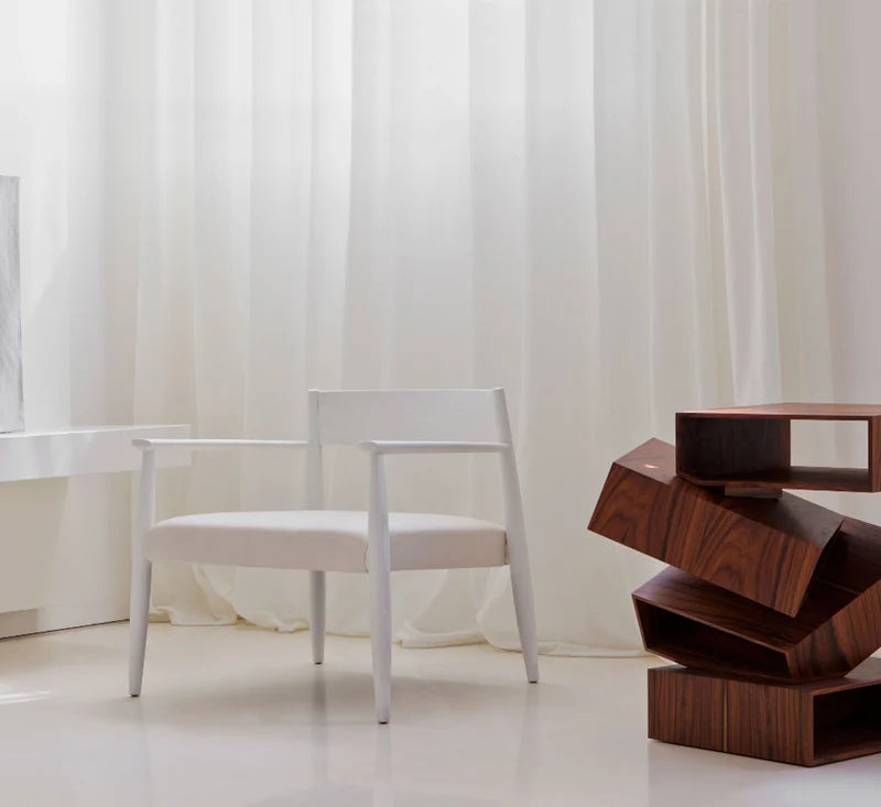 Ghiaccio è una poltroncina con braccioli disegnata da Piero Lissoni per Porro, che unisce il calore del legno alla morbidezza di un rivestimento avvolgente. Parte di una collezione ispirata all’equilibrio tra materia e comfort, Ghiaccio si distingue per la sua struttura in massello di frassino, disponibile in diverse finiture, e per una seduta accogliente, rivestita in tessuto, ecopelle o pelle.