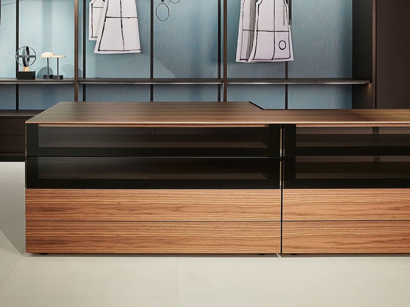 - 12 cassetti totali: 4 in cristallo e 8 con finitura coordinata
