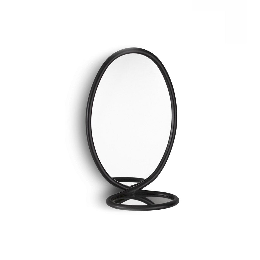 La sua cornice in legno laccato nero opaco, lavorata a mano, abbraccia il vetro con un effetto "loop" continuo, da cui il nome. Le piccole imperfezioni artigianali diventano segni distintivi, donando autenticità e valore a ogni pezzo. Grazie alla sua forma ovale e al design sobrio, Loop si inserisce armoniosamente in ogni ambiente: dall’ingresso al bagno, dalla camera da letto al living.