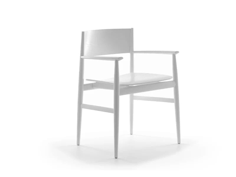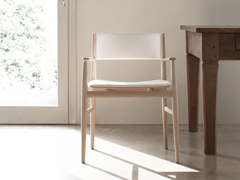 Neve, disegnata da Piero Lissoni per Porro, è una sedia con braccioli che rappresenta la reinterpretazione contemporanea della classica sedia in legno. La sua struttura in massello di frassino, solida e leggera, si arricchisce di linee nette e spessori calibrati, creando una forma rigorosa ma al tempo stesso morbida e accogliente.