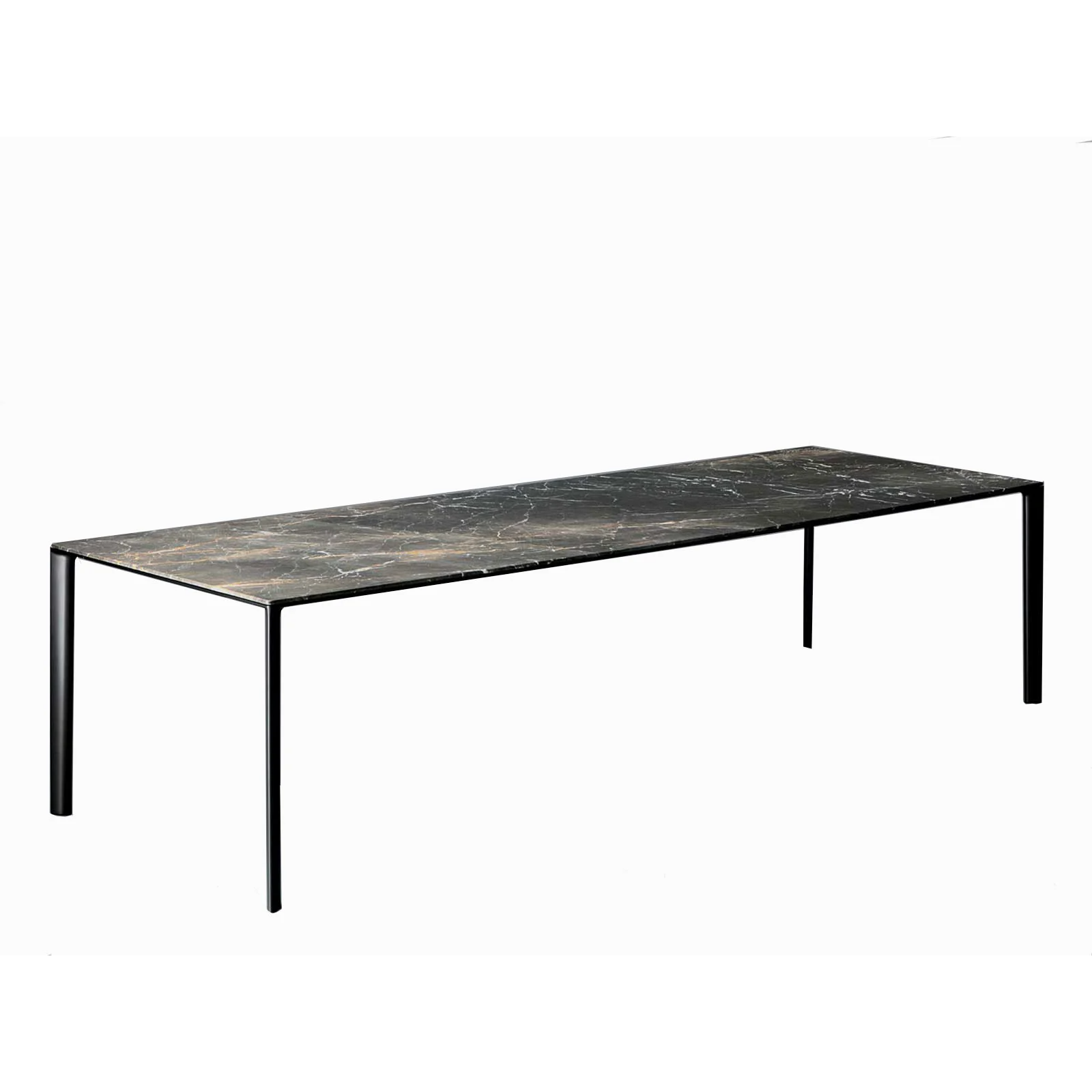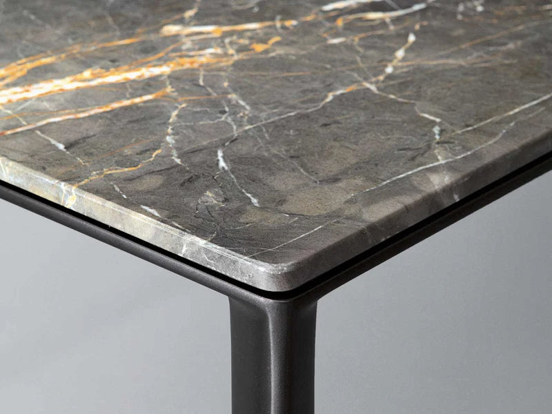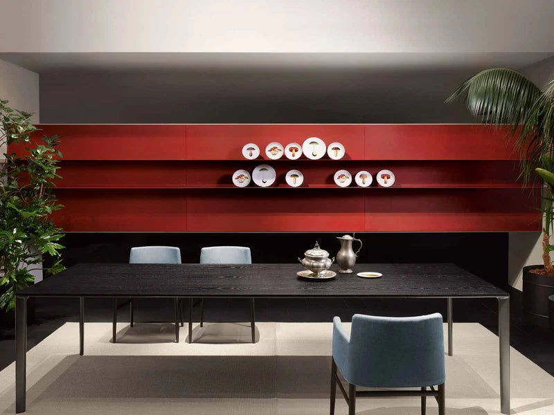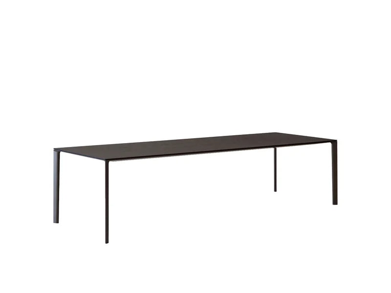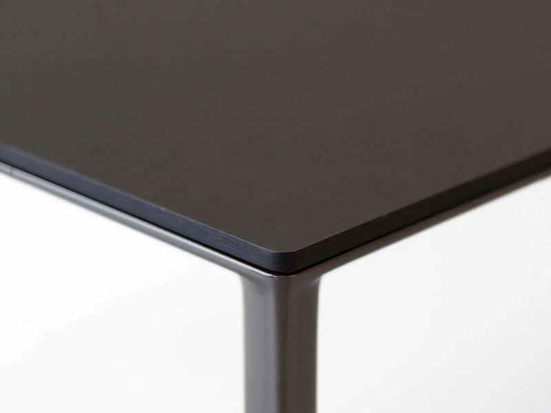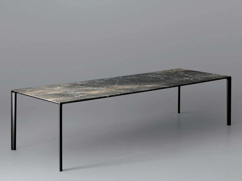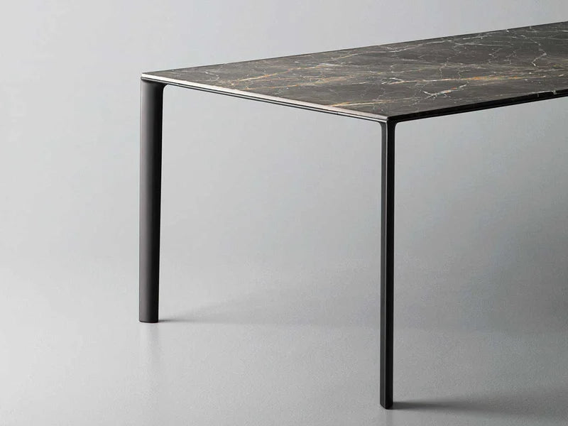 Il piano d’appoggio si innesta su una struttura portante sottile ma solida, ed è disponibile in una vasta gamma di materiali di pregio: legno naturale o tinto, marmo, ceramica. L’effetto complessivo è quello di un tavolo minimale, rigoroso, di ispirazione industriale, perfettamente adatto a uffici, ambienti contract o interni domestici di alto profilo.