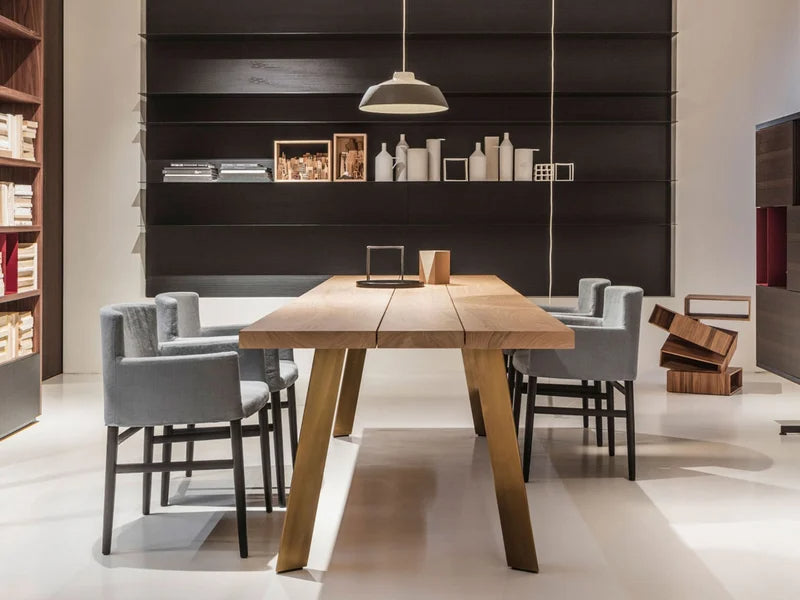 Ryoba è un tavolo che celebra la bellezza imperfetta e la qualità senza tempo, diventando protagonista di ambienti domestici eleganti, loft moderni, o contesti contract raffinati.