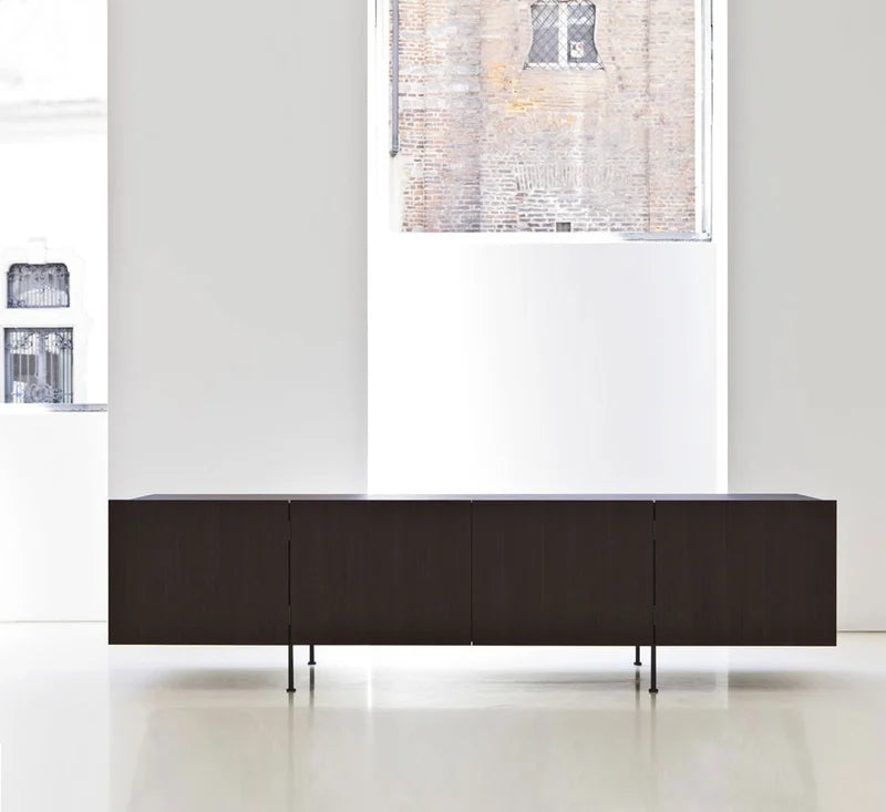 Tiller, disegnata da Piero Lissoni per Porro, è una madia bassa orizzontale dal forte impatto architettonico e tecnico. Caratterizzata da un sistema di apertura unico, le sue 4 ante ruotano a 180°, creando configurazioni sempre diverse e dinamiche, che trasformano l’aspetto frontale della madia con un gesto semplice ma sorprendente.