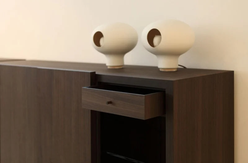 Tiller è un arredo d’autore, perfetto per living sofisticati, ingressi scenografici o come mobile contenitore in spazi direzionali, dove il design incontra la sperimentazione tecnologica.