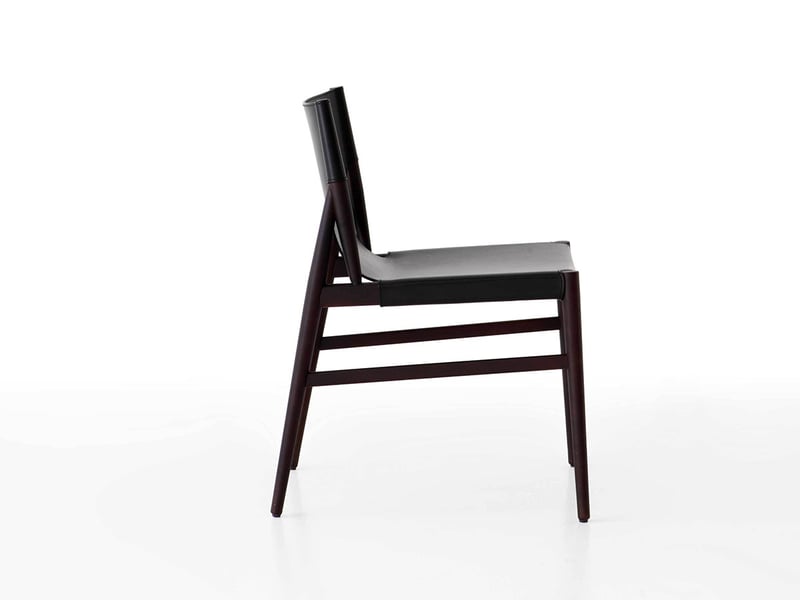 La sedia Voyage, progettata da Gamfratesi per Porro, è una perfetta sintesi di eleganza e dinamismo, ispirata alle linee precise degli anni '50. La combinazione di acero tinto nero per la struttura e cuoio nero per la seduta e lo schienale conferisce alla sedia un carattere deciso e sofisticato, ideale per ambienti moderni e ricercati.