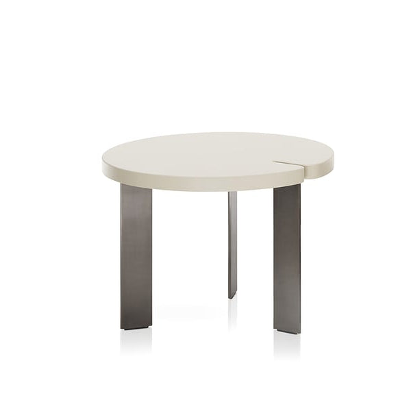 Butter Tavolino Ø 50, progettato dallo studio 967Arch per Saba e presentato al Salone del Mobile 2024, è un oggetto dal design raffinato, nato da un'immagine semplice: una lama che affonda nel burro. Questa ispirazione quotidiana si traduce in una superficie leggermente inclinata e curva, che valorizza la struttura metallica sottostante come se fosse parte di un gesto delicato. Il risultato è un tavolino elegante e poetico, perfetto per dare carattere e morbidezza formale a spazi contemporanei. Disponibile con finitura lucida o opaca, in tonalità Avorio o Sabbia, e gambe in metallo con finitura Corten o Nichel Nero, Butter è pensato per integrarsi armoniosamente in living e lounge sofisticati.