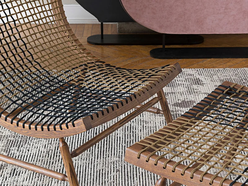 La Poltrona Sitar di Saba, disegnata da Enzo Berti, è un oggetto poetico che unisce suggestioni orientali e design contemporaneo. Realizzata in frassino tinto noce con intreccio bicolore Cord&Black in corda nautica, Sitar si distingue per la sua forma leggera e avvolgente, ispirata all'equilibrio e alla leggerezza di una piuma. Il nome evoca lo strumento musicale della tradizione classica indiana, trasformando ogni seduta in una pausa armoniosa dal forte valore estetico. Un complemento dal carattere unico, perfetto per ambienti raffinati, contemporanei o contaminati da influenze esotiche.