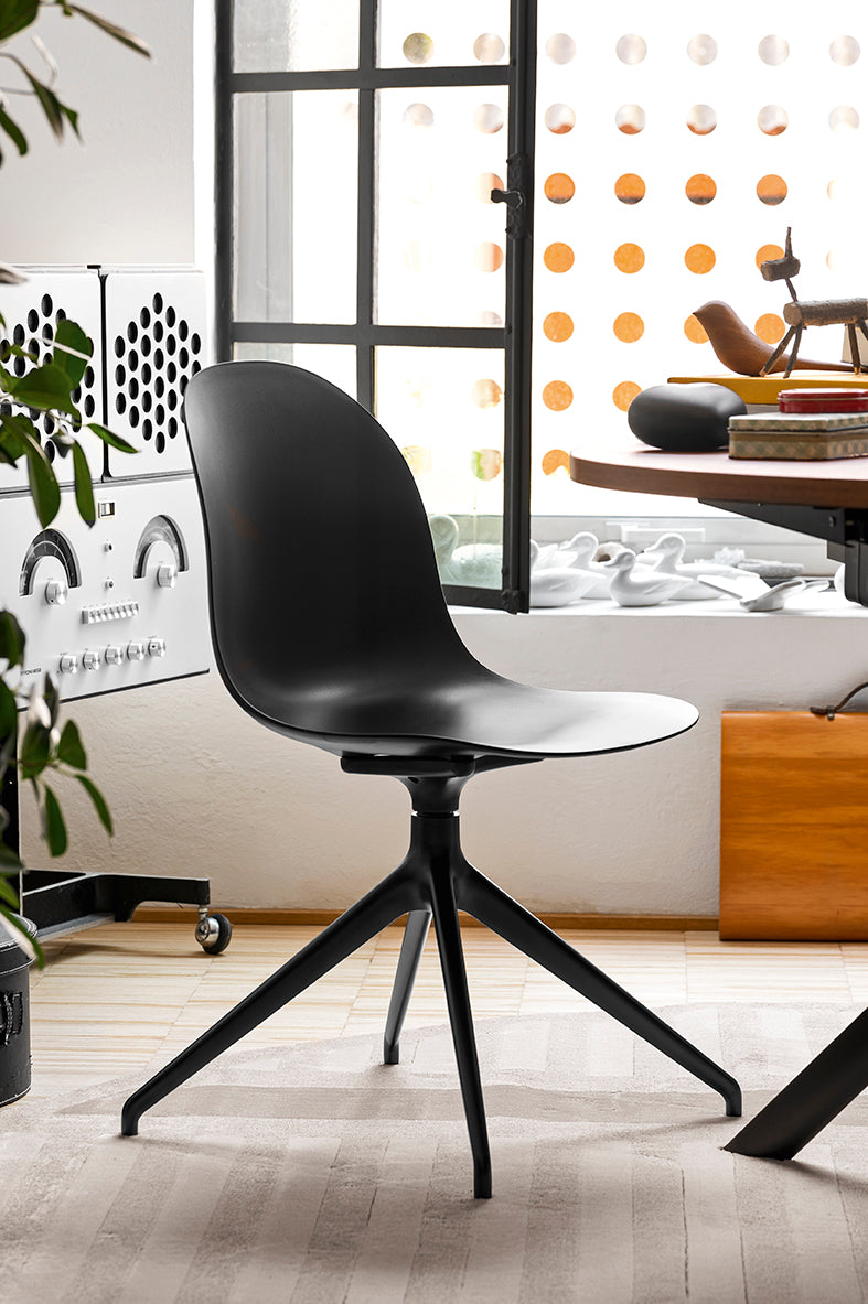 La sedia ACADEMY con struttura in alluminio combina design moderno, praticità e versatilità. Questo modello è girevole e dotato di meccanismo di ritorno, rendendolo estremamente funzionale per uffici, sale riunioni o ambienti domestici dinamici.